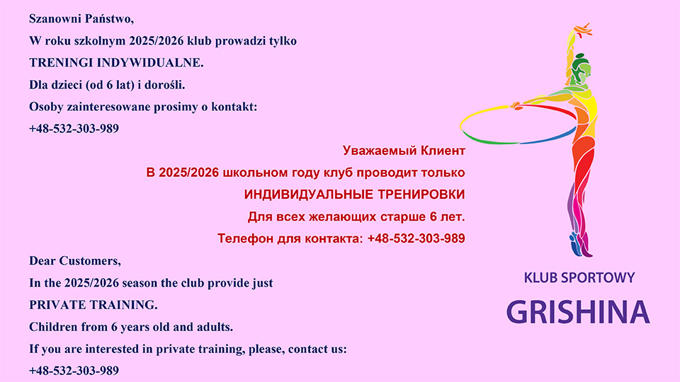 Klub Sportowy Grishina to idealne miejsce dla dzieci chcących spróbować swoich sił w gimnastyce artystycznej. Celem naszych zajęć jest połączenie zabawy z aktywnym spędzaniem czasu oraz